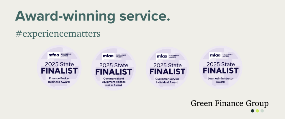 Green Finance Group is proud to announce we’ve been named a finalist for the second year in a row in the Finance Broker Business Award – Queensland category at the 2025 Mortgage and Finance Association of Australia’s (MFAA) State Excellence Awards. This our second year in a row taking out the top honours, following our win at the Qld and national levels in 2024.